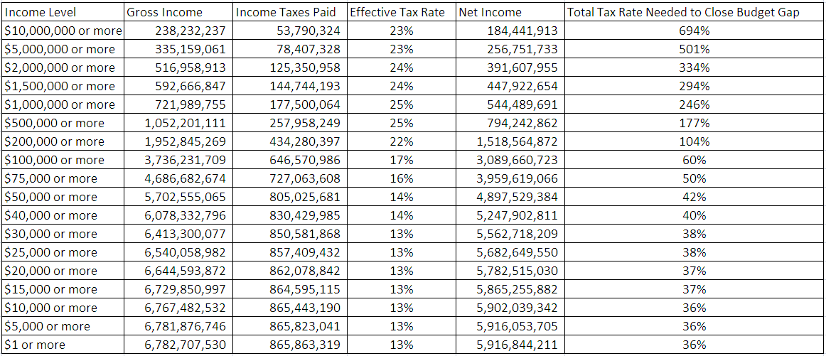 My point with raising the tax rates to balance the budget was to make Americans feel with their pocketbook what our actual spending is instead of just piling on more debt. I don't actually want to see those higher tax rates, I don't think anyone would, and that's the point. If the Republicans were to threaten to balance the budget through taxes alone, it would perhaps make the rest of government wake up and say 'hey, maybe the path we're on really isn't the best'. It's expecting a lot, which is why it will never happen.